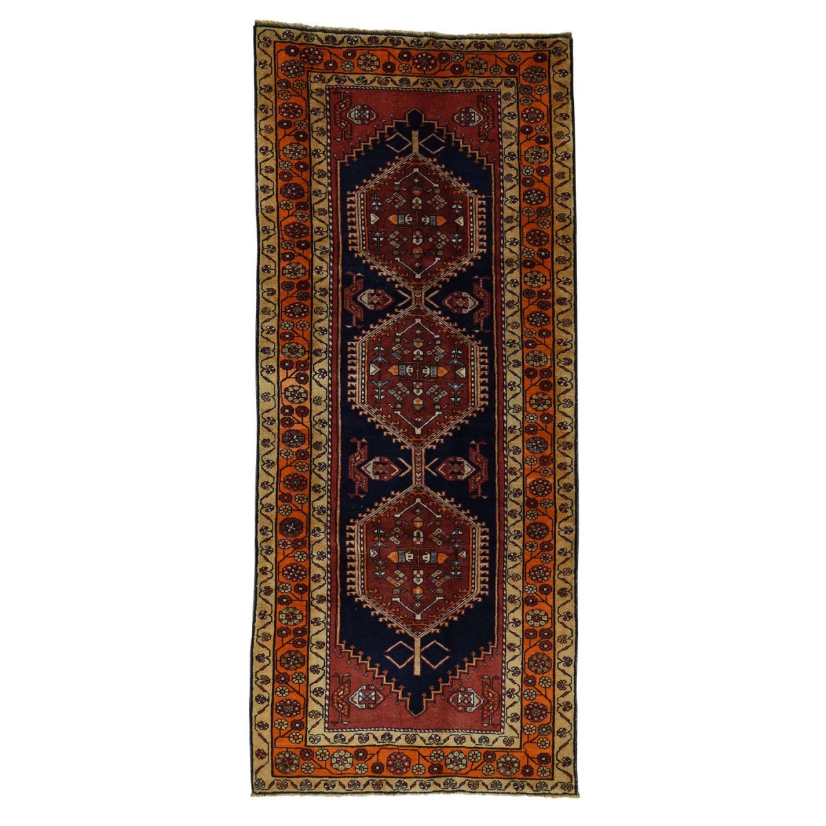 1800 Get A Rug sh36515 4 ft. 6 in. x 10 ft. 6 in. Pure Wool Hand Knotted Persian Hamadan Wide Runner Rug Blue