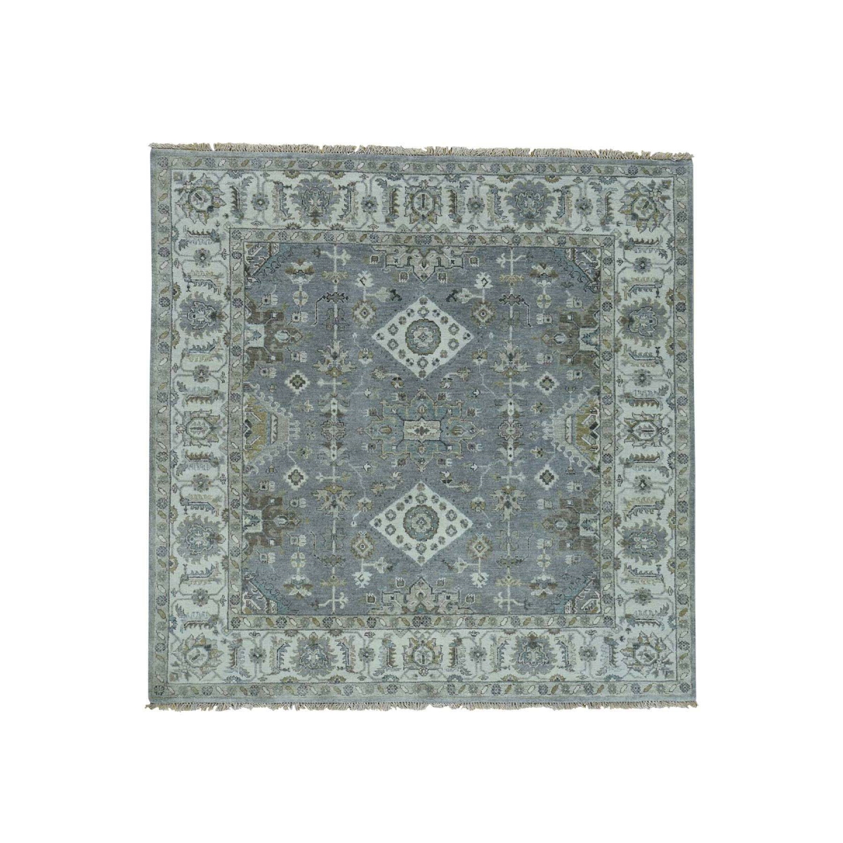 1800 Get A Rug sh36548 6 ft. x 6 ft. Pure Wool Karajeh Hand Knotted Square Oriental Rug Grey