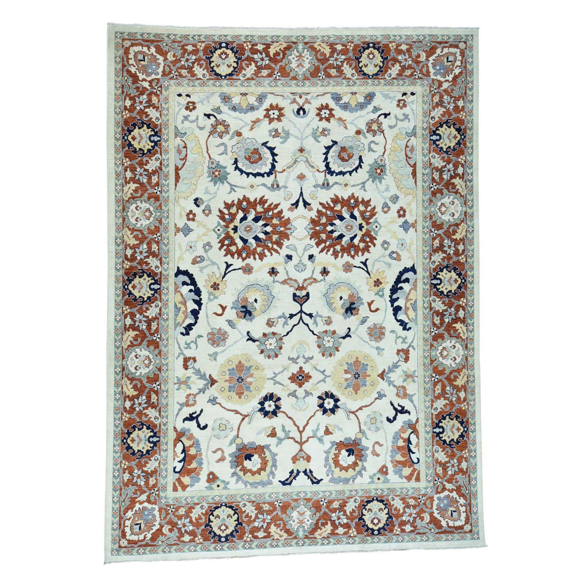 1800 Get A Rug sh36556 10 ft. x 14 ft. Peshawar Sultanabad Design Hand Knotted Pure Wool Oriental Rug Ivory