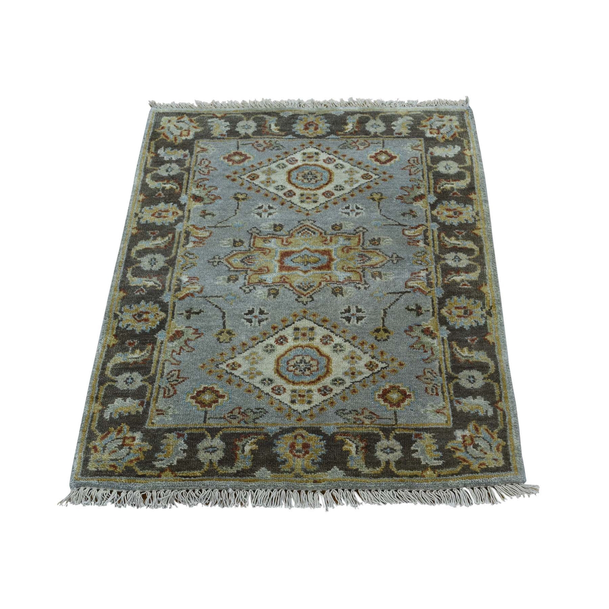 1800 Get A Rug sh36576 2 ft. 1 in. x 3 ft. Pure Wool Hand Knotted Heriz with Karajeh Design Oriental Rug Grey