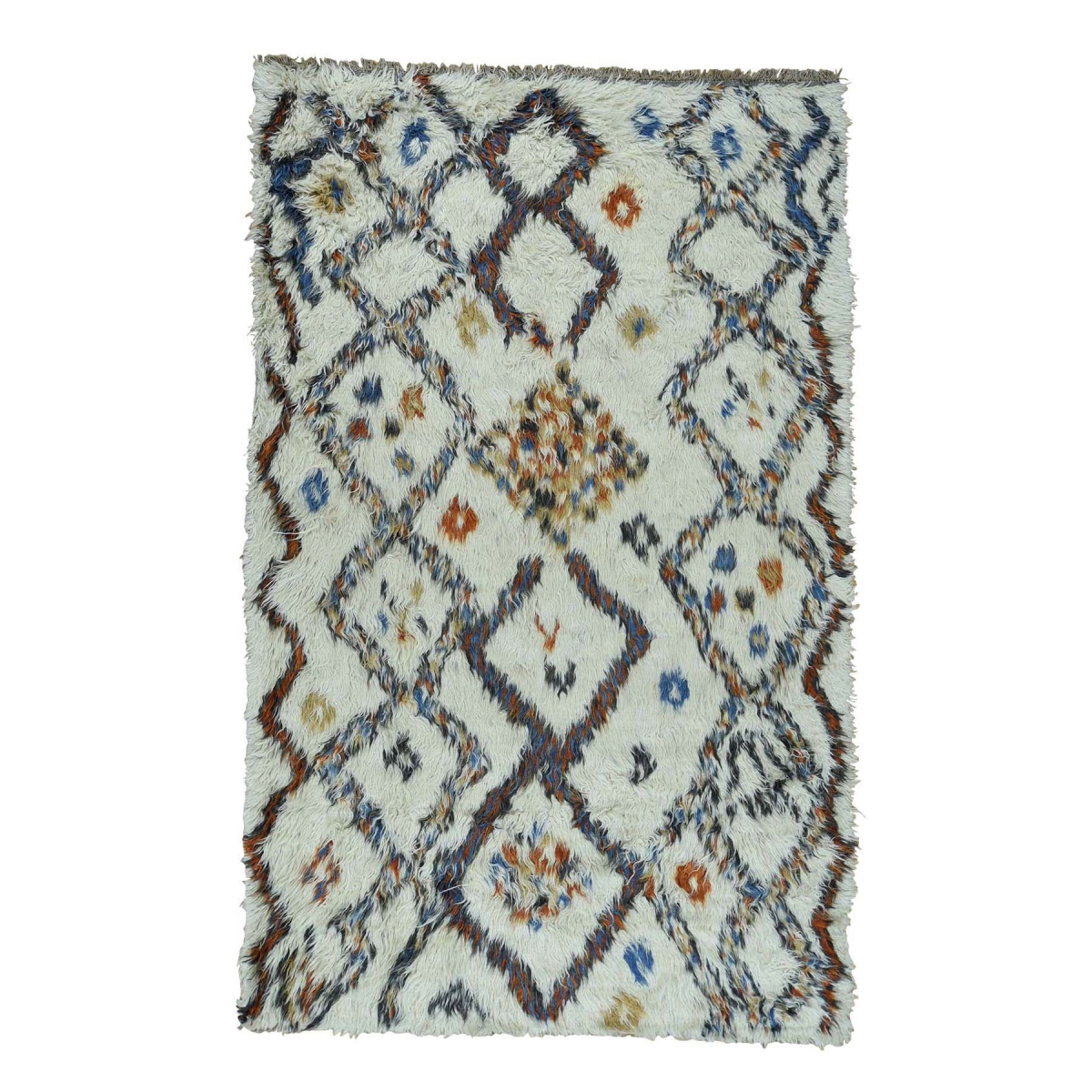 Features- This is a truly genuine one-of-a-kind moroccan tribal design hand-knotted pure wool shaggy oriental rug