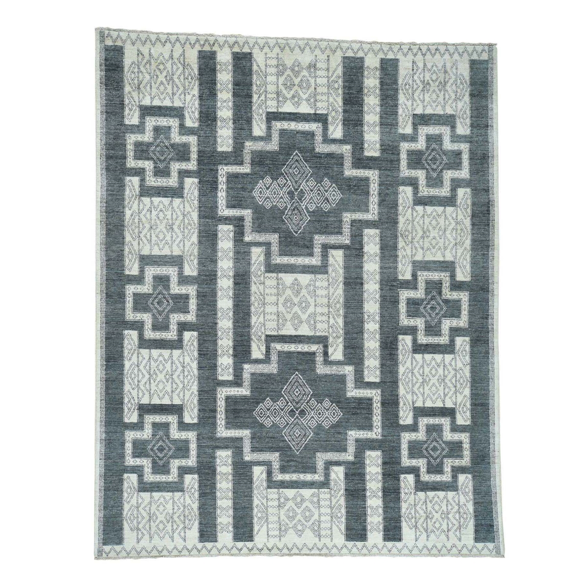 Features- This is a truly genuine one-of-a-kind hand-knotted pure wool peshawar with southwest motifs rug