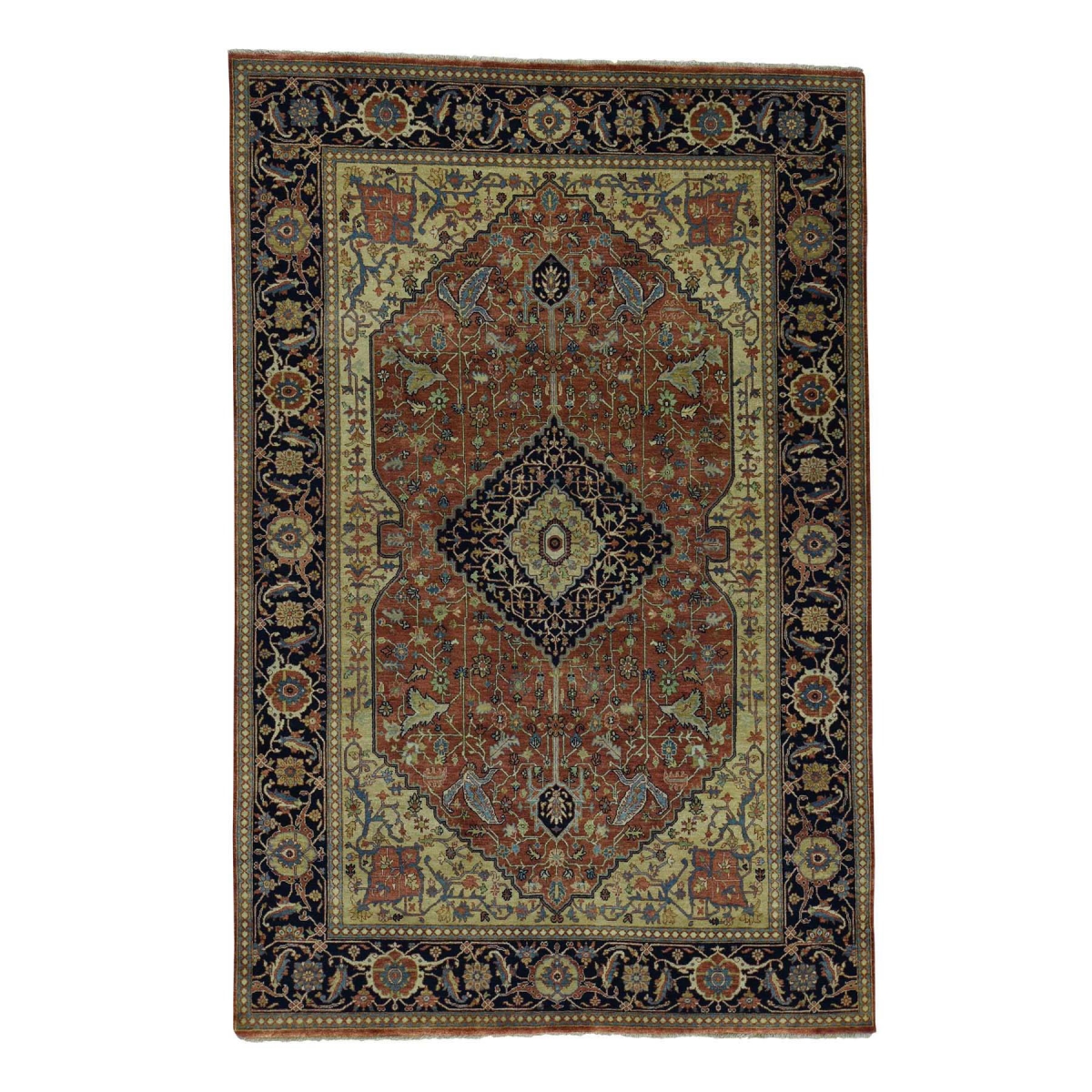Features- This is a truly genuine one-of-a-kind antiqued heriz recreation hand-knotted pure wool oriental rug