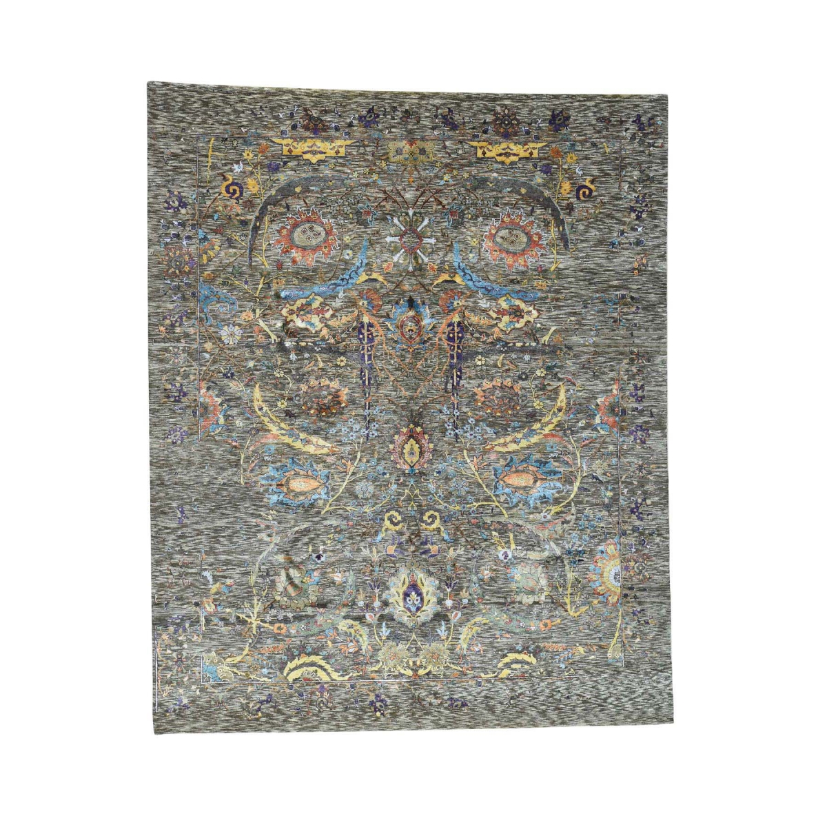 Features- This is a truly genuine one-of-a-kind hand-knotted wool and silk colorful ancient motifs oriental rug