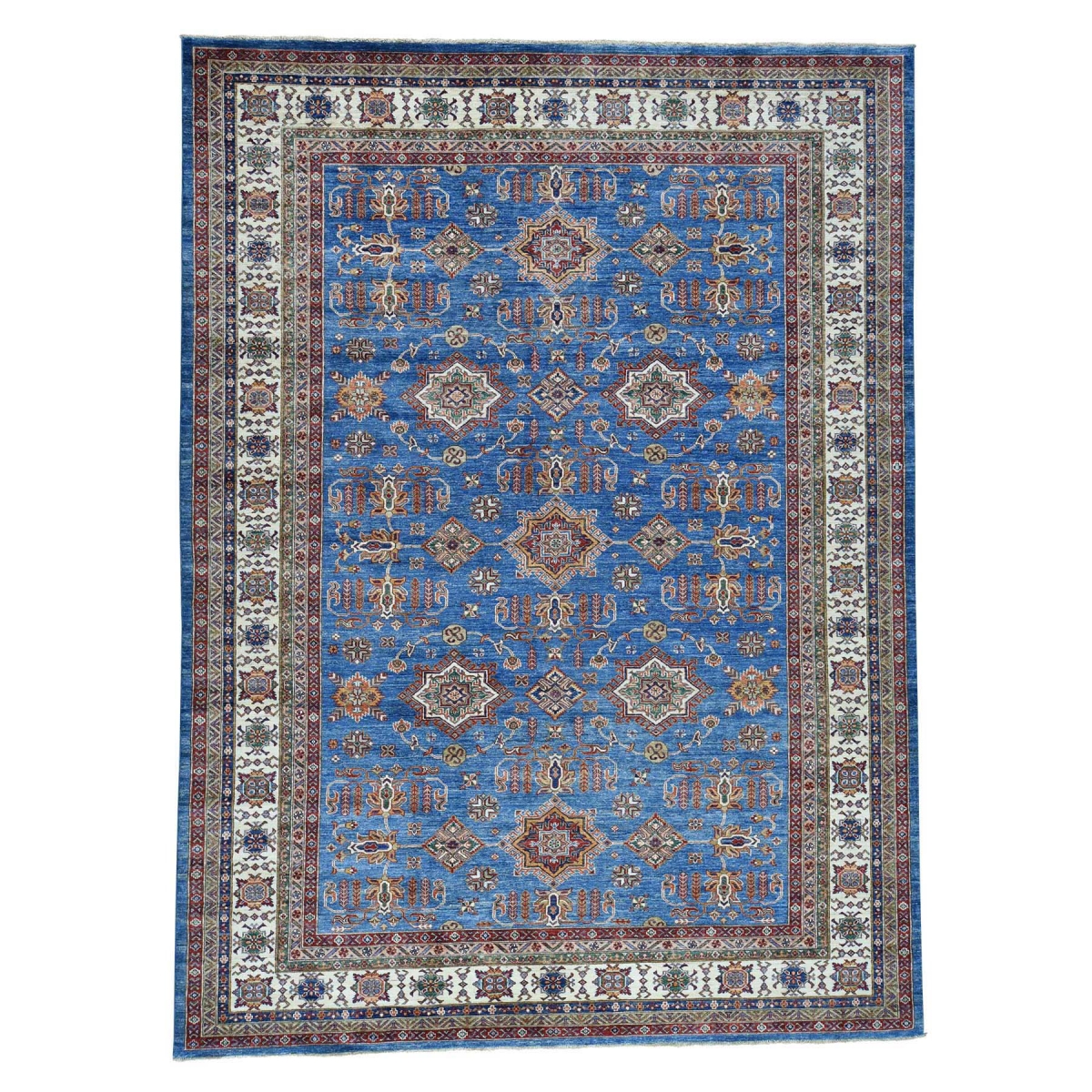 1800 Get A Rug sh36657 9 ft. 2 in. x 12 ft. 4 in. Super Kazak Hand Knotted Pure Wool Oriental Rug Denim Blue