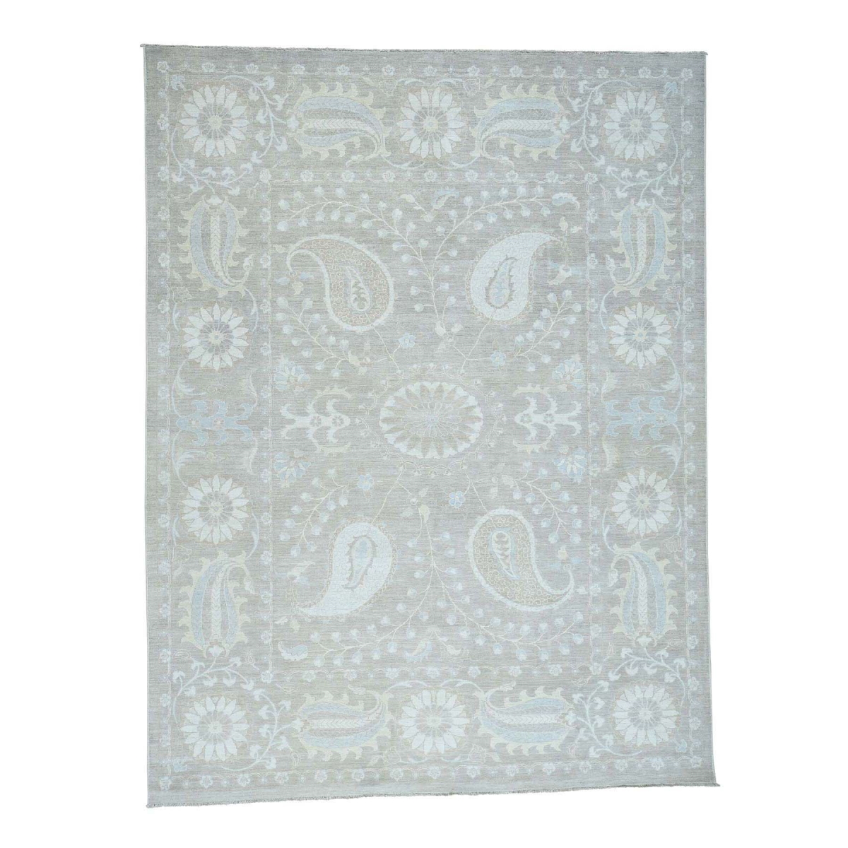 1800 Get A Rug sh36658 9 ft. x 11 ft. 9 in. White Wash Peshawar Suzani Design Pure Wool Hand Knotted Rug Beige