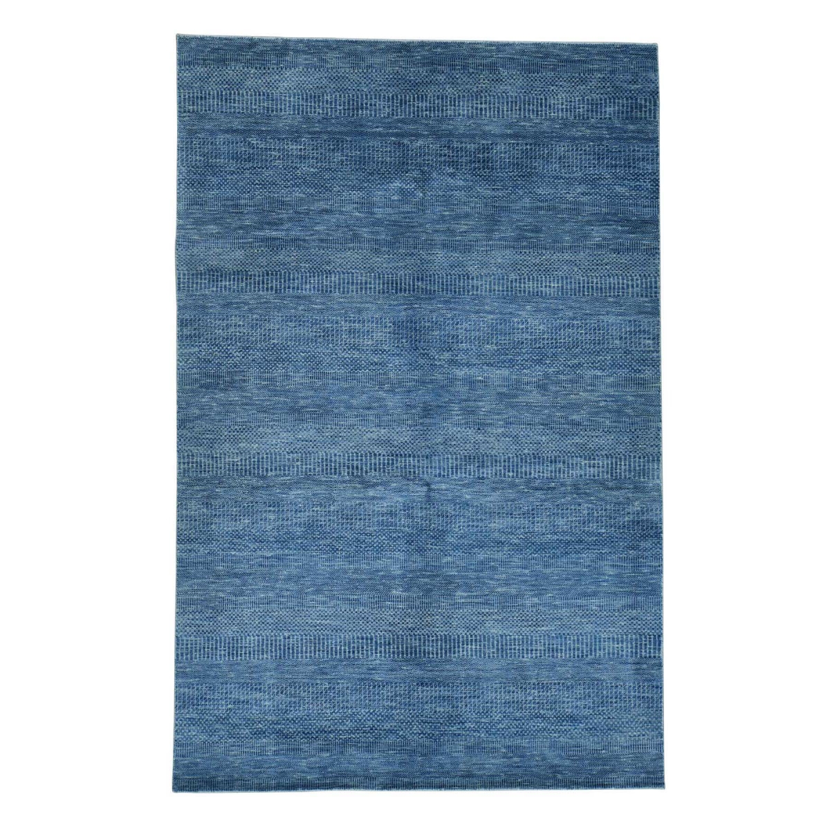 1800 Get A Rug sh36723 6 ft. x 9 ft. 3 in. Denim Hand Knotted Wool and Silk Grass Design Oriental Rug Blue