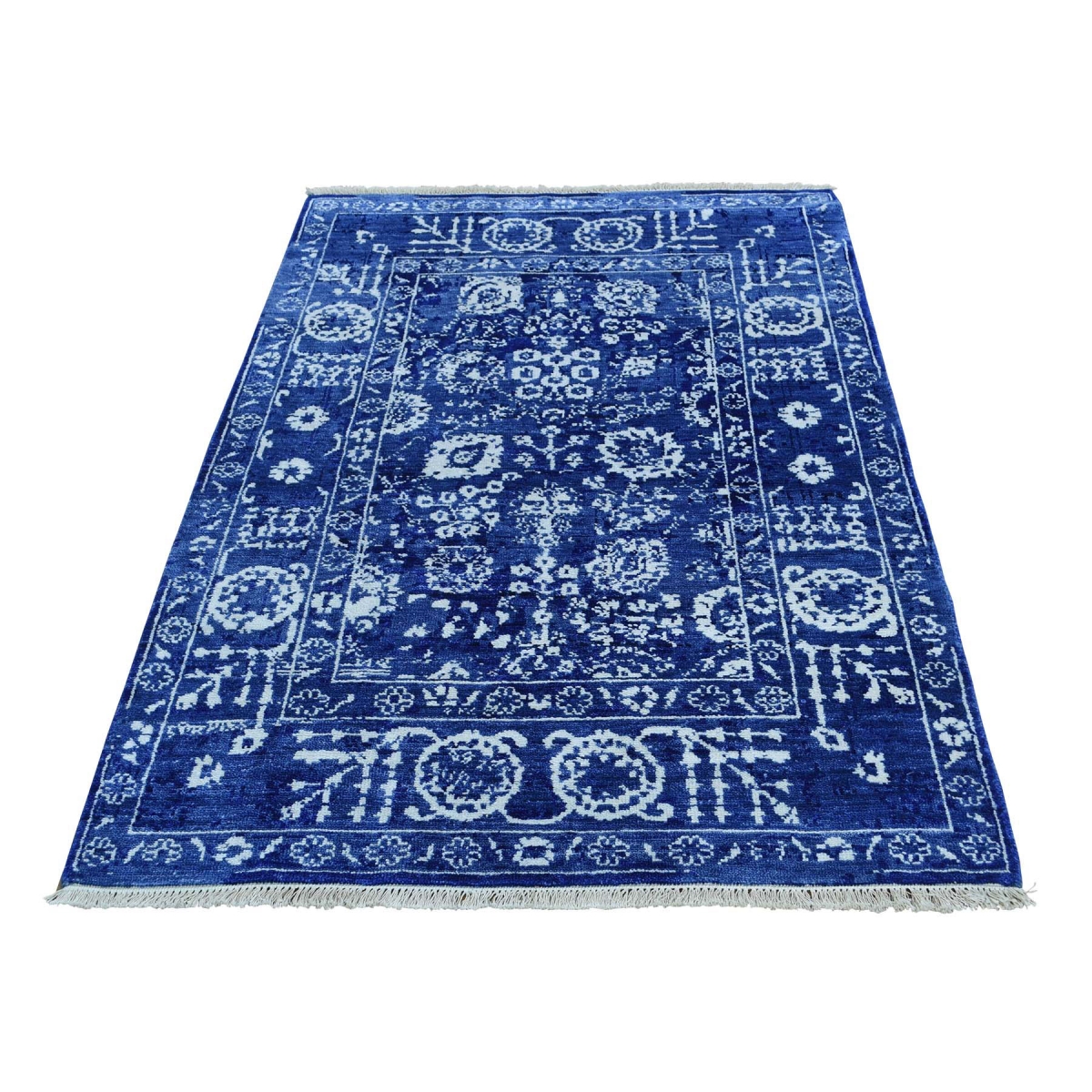 1800 Get A Rug sh36730 3 ft. 2 in. x 5 ft. Hand Knotted Wool and Silk Tone on Tone Tabriz Oriental Rug Blue