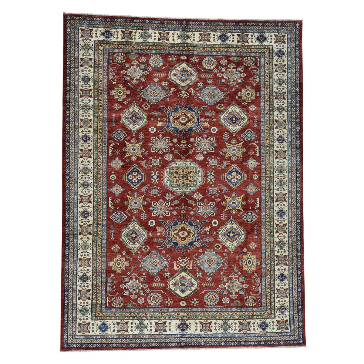 Features- This is a truly genuine one-of-a-kind pure wool hand-knotted super kazak oriental rug